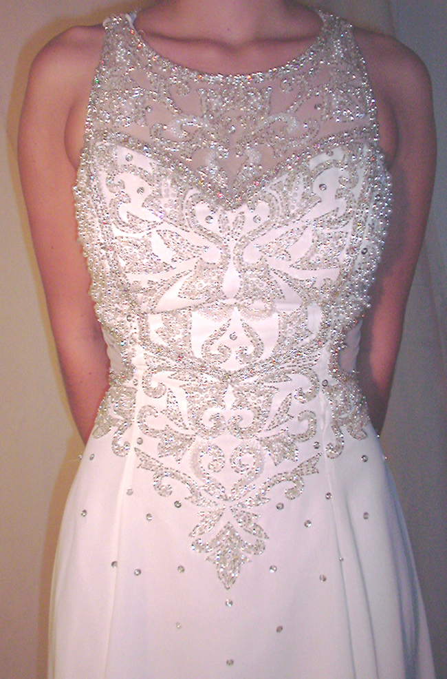covered with silver and white liquid beading with pearl and sequence