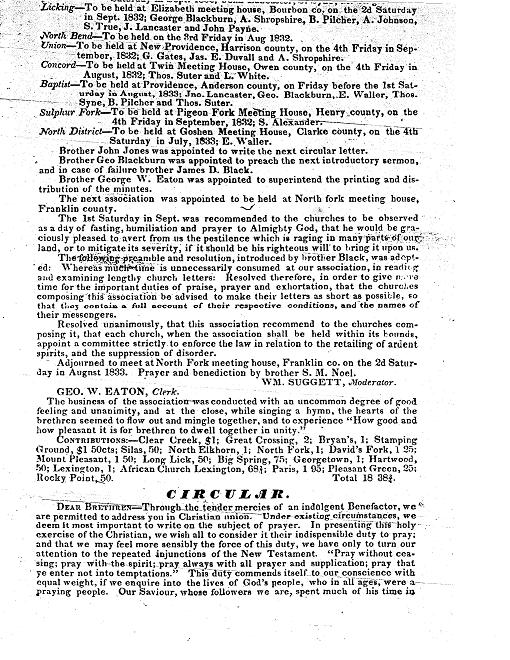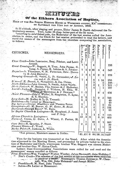 [From Elkhorn Bapitst Association Minutes, 1832. The document is from SBHL&A, Nashville, TN and was provided by Stephen duBarry. — jrd]
