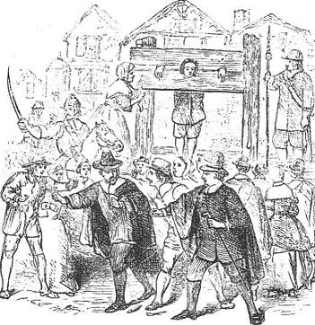 Precisely at eleven o'clock he was placed in the pillory. Many friends attended him, and stood around the instrument of torture for the purpose of sympathy and encouragement. And there, too, stood his wife, and "frequently spoke in vindication of her husband, and of the principles for which he suffered." A true "helpmeet!"
