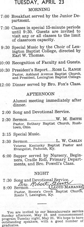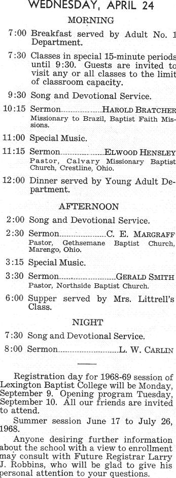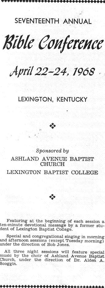 Ashland Avenue Baptist Church Lexington, Kentucky Conference Schedule, 1968 Kentucky Baptist Church Histories Baptist History Homepage