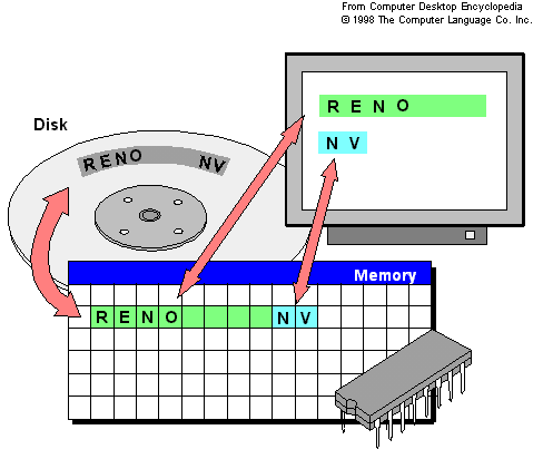 Once the data is in memory, it can be processed (calculated, compared and copied). The results are sent to a screen,