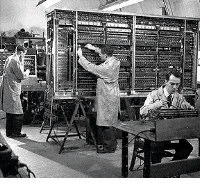Created by Max Newman and Alan Turing for the British Government. Although this was the first electronic computer, it was designed to crack the German's code machine Enigma during World War I, so it was held top secret until long after the ENIAC was introduced to the world.
