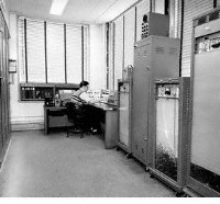 Electronic Delay Storage Automatic Computer by Maurice Wilkes, the first practical stored-program computer, at Cambridge University. For programming the EDSAC, Wilkes established a library of short programs called subroutines stored on punched paper tapes. Processed with vacuum tubes, memory with mercury delay line at a speed of 714 operations per second.