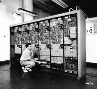 This system Remington Rand delivered to the U.S. Census Bureau was the first commercial computer to attract widespread public attention & the first to use a compiler, the A-O, developed by Grace Hopper. With the A-O, "Coders" (calling them programmers had not yet left England) could now instruct the computer to retireve subroutines from storage (magnetic tape) to put into memory. Although manufactured by Remington Rand, the machine often was mistakenly referred to as the "IBM UNIVAC." Remington Rand eventually sold 46 machines at more than $1 million each.F.O.B. factory $750,000 plus $185,000 for a high speed printer. Speed: 1,905 operations per second, Input/output: magnetic tape, unityper, printer. Memory size: 1,000 12-digit words in delay lines, Memory type: delay lines, magnetic tape, Technology: serial vacuum tubes, delay lines, magnetic tape, Floor space: 943 cubic feet, Cost: F.O.B. factory $750,000 plus $185,000 for a high speed printer, Project leaders: J. Presper Eckert and John Mauchly