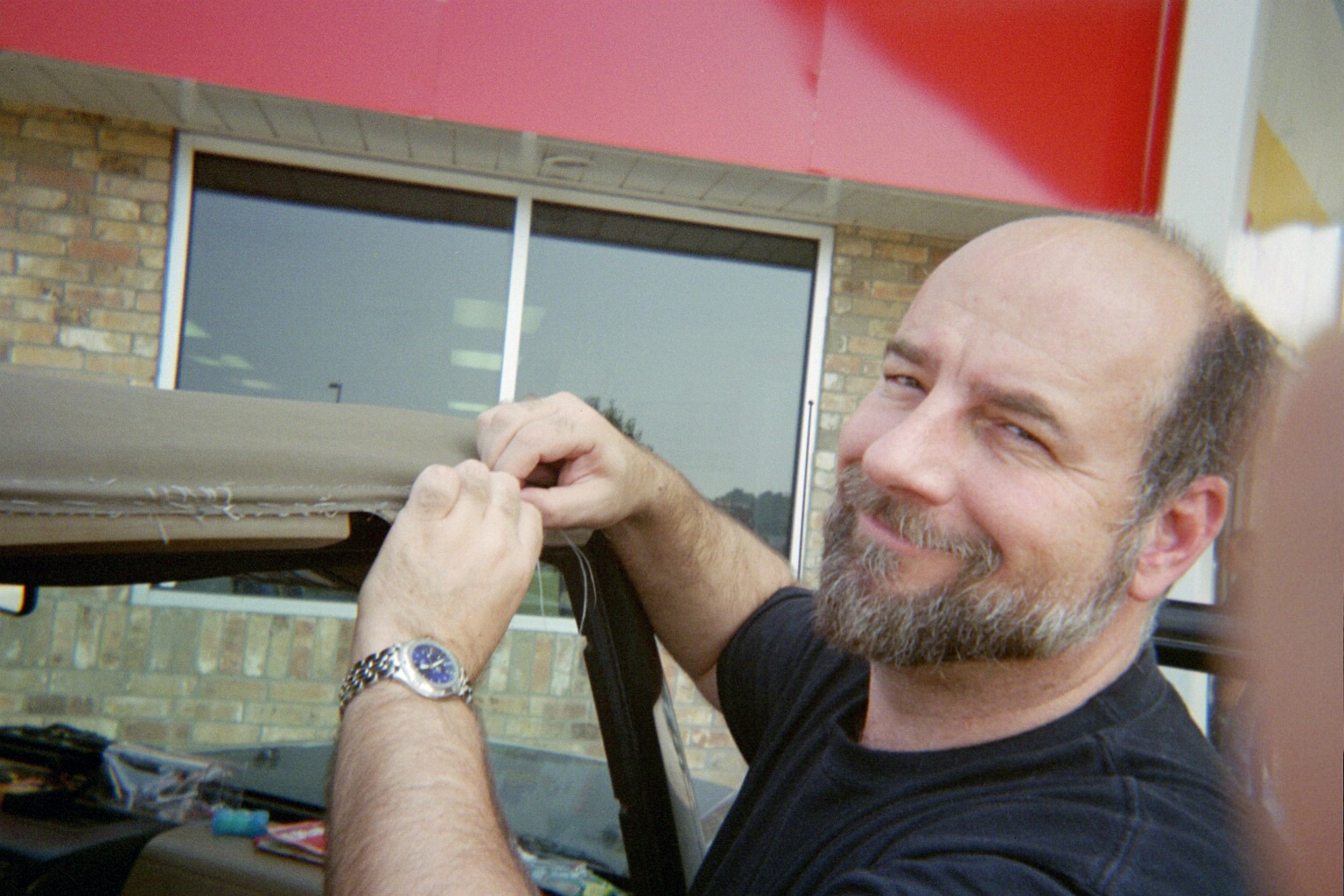 Fixing the Jeep top on Jacob and John's drive back from Utah.