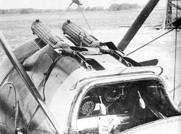 A similar installation was made on some French Voisin biplanes, with Hotchkiss machineguns that