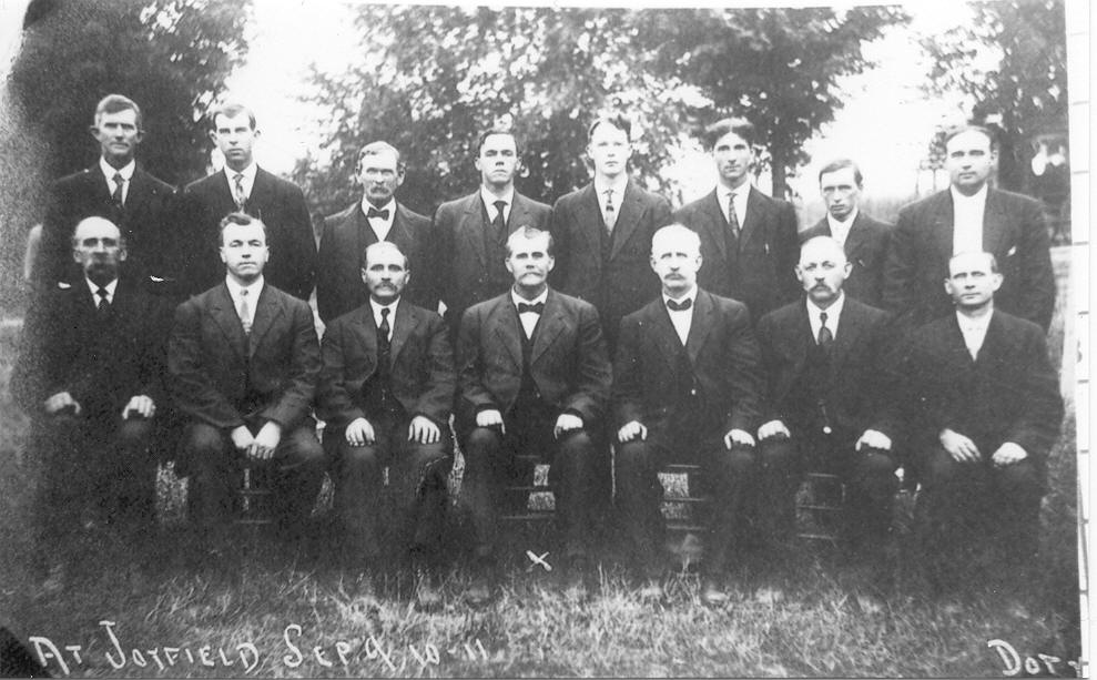 Top:L-R ?, Harry Davis, D.E. Dunshee, Byron Doty, Clyde Ellis, ?, ?, ? Bottom: L-R ?, Homer Doty, Fred Brackenbury, W.D. Ellis, J.J. Cornish, John Hanson, ? |