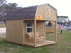 Portable playhouses & cabins are offered in sizes from 8 x 12 to 14 x 30, and a double wide cabin which is 24 x 28.